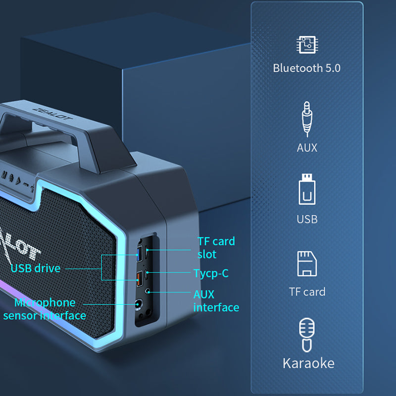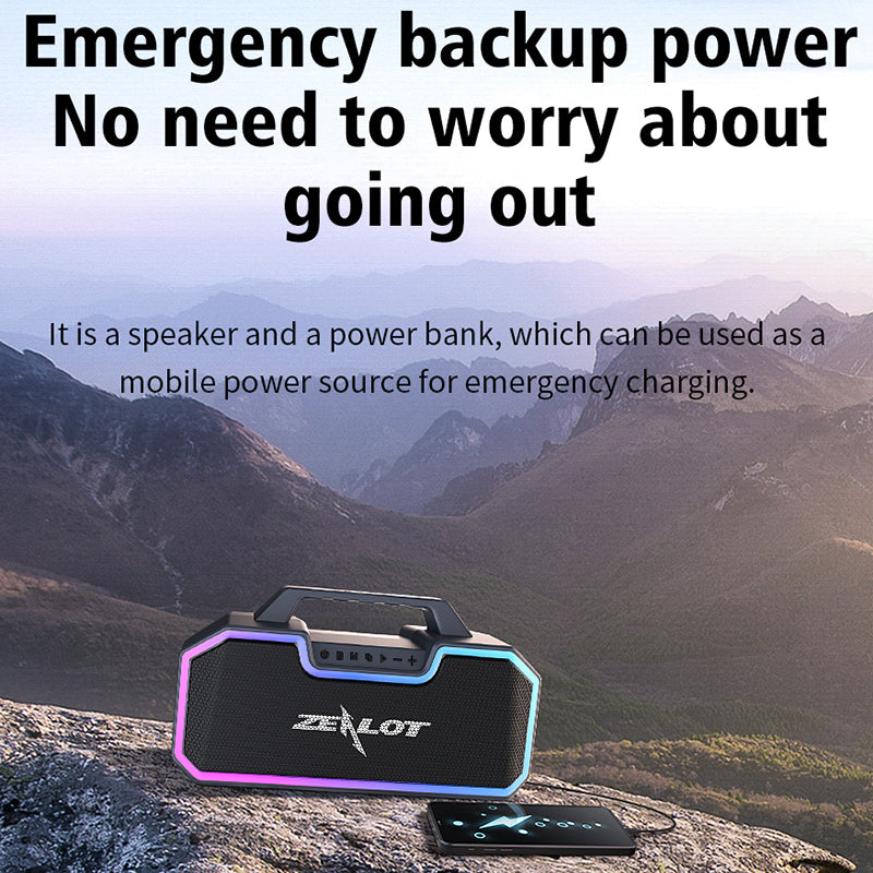 - ZEALOT S57 Portable Outdoor Rechargeable Bluetooth Speaker Colorful Lighting Wireless Music Subwoofer Support TF Card Playing Music ZEALOT S57 Portable Outdoor Rechargeable Bluetooth Speaker Colorful Lighting Wireless Music Subwoofer Support TF Card Playing Music
