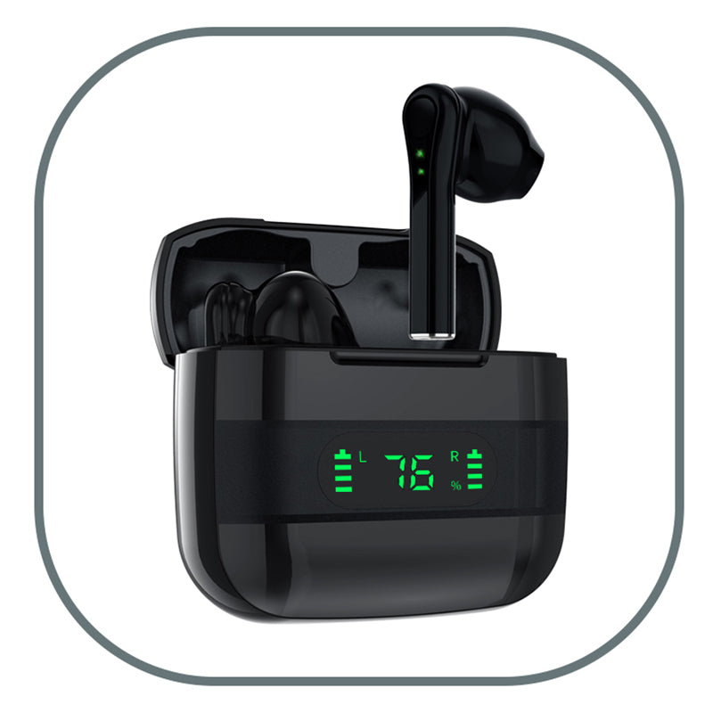 V12 Wireless Bluetooth Earphones Half In-Ear Earbuds Stereo Headset with Digital Display Charge Case