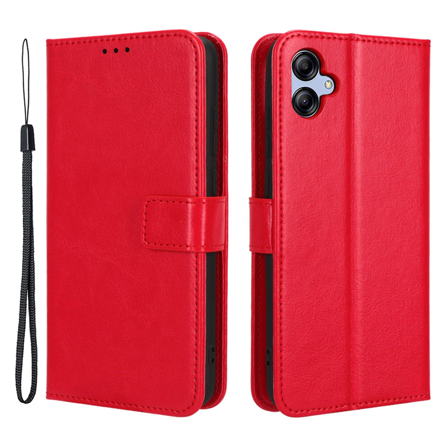 Drop-proof Phone Case For Samsung Galaxy A04e 4G F04 4G M04 4G Crazy Horse Texture Magnetic Flip Wallet Stand PU Leather Cell Phone Cover with Strap