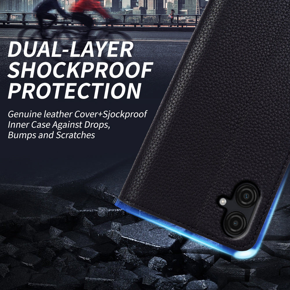 - Wallet Phone Case for Samsung Galaxy A04e 4G / F04 4G / M04 4G Litchi Texture Genuine Cow Leather Stand Cover Wallet Phone Case for Samsung Galaxy A04e 4G / F04 4G / M04 4G Litchi Texture Genuine Cow Leather Stand Cover