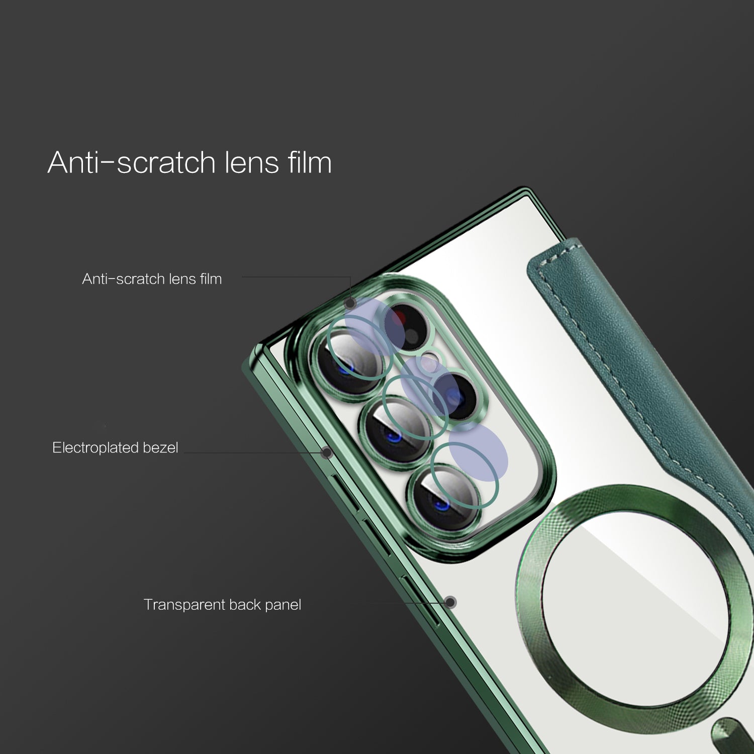 - Made of TPU+PU leather material, with an electroplating stylish look and high durability