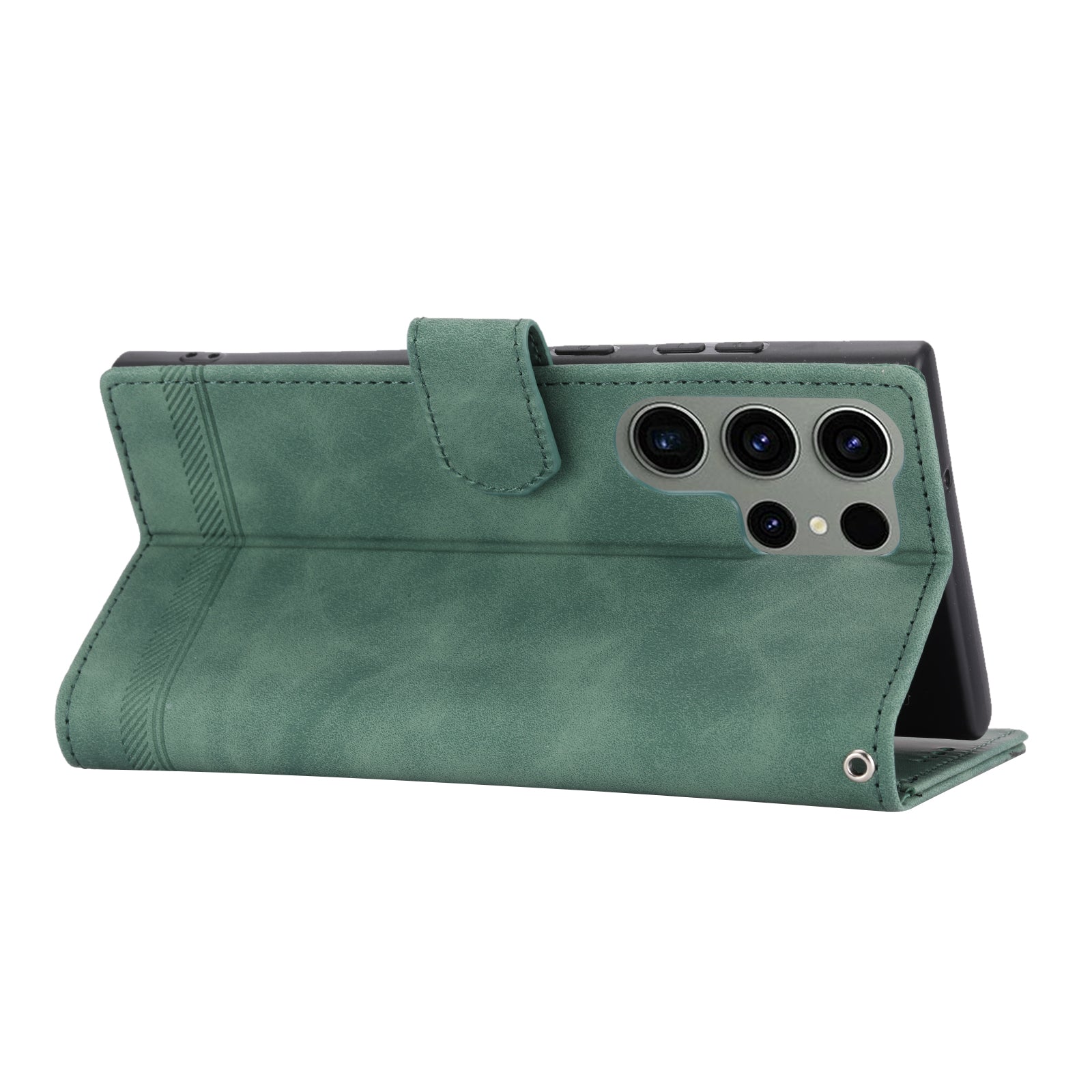 DIERFENG DF-03 Stand Wallet Phone Case for Samsung Galaxy S23 Ultra PU Leather Lines Imprinted Cell Phone Cover
