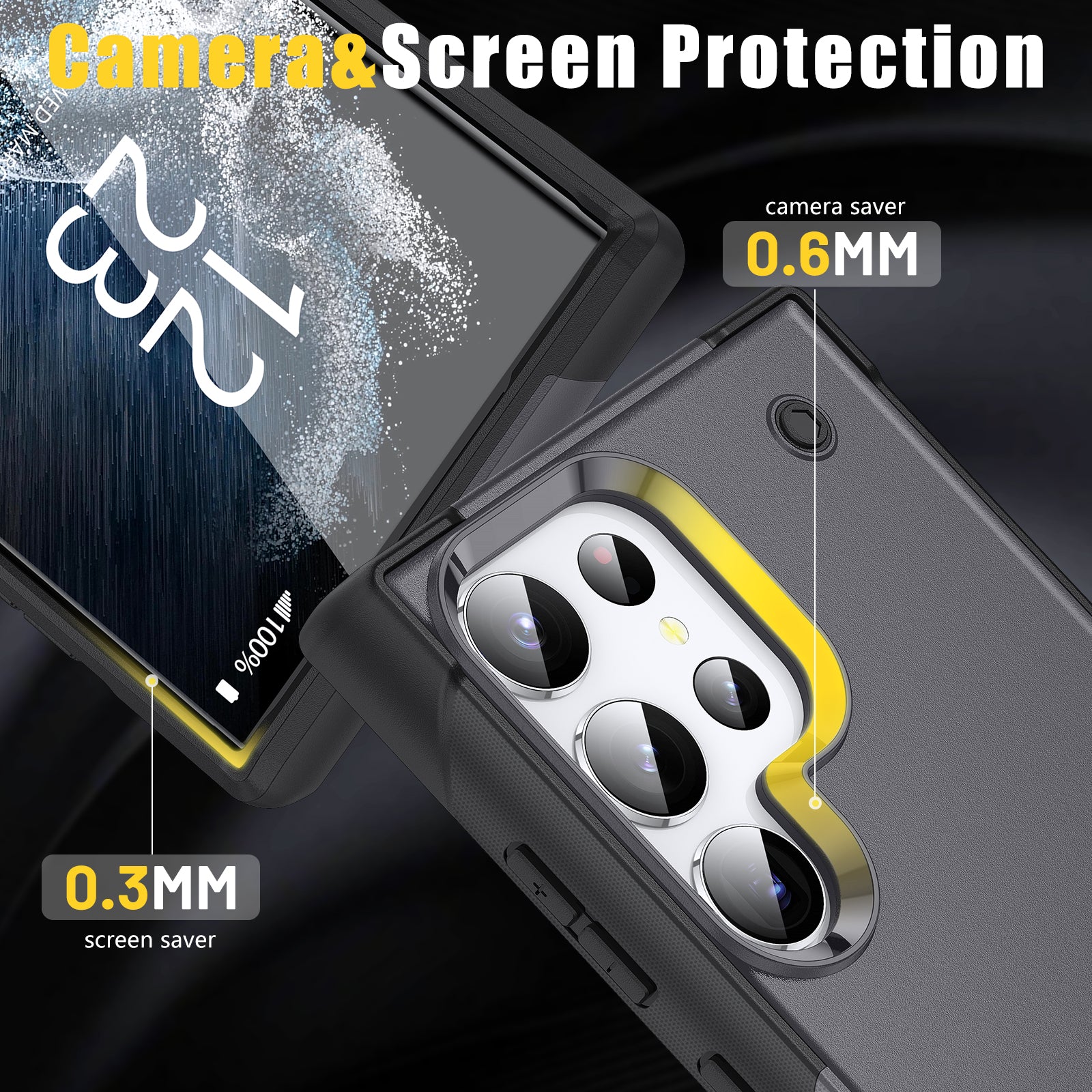 - Raised bezel for protecting camera and screen against scratches