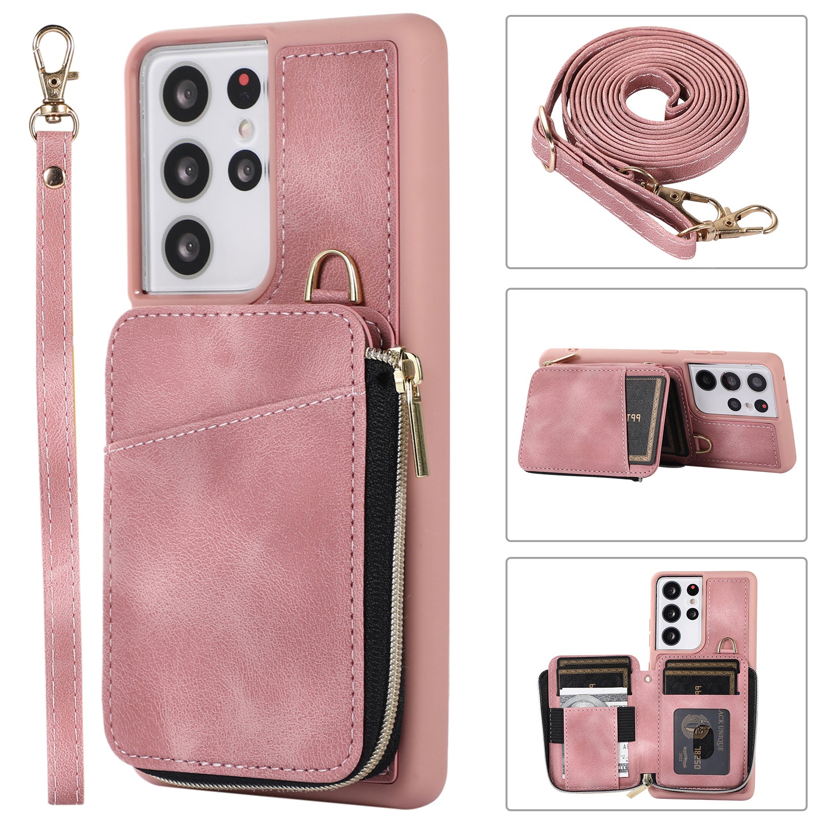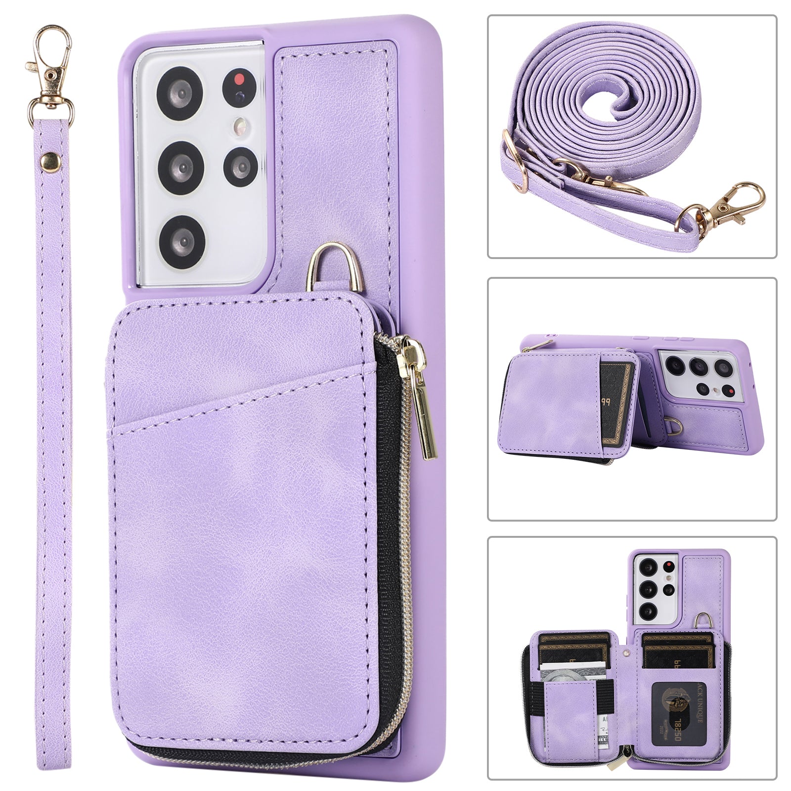 - For Samsung Galaxy S23 Ultra Kickstand Phone Case Zipper Card Bag Leather TPU Phone Cover with Straps For Samsung Galaxy S23 Ultra Kickstand Phone Case Zipper Card Bag Leather TPU Phone Cover with Straps