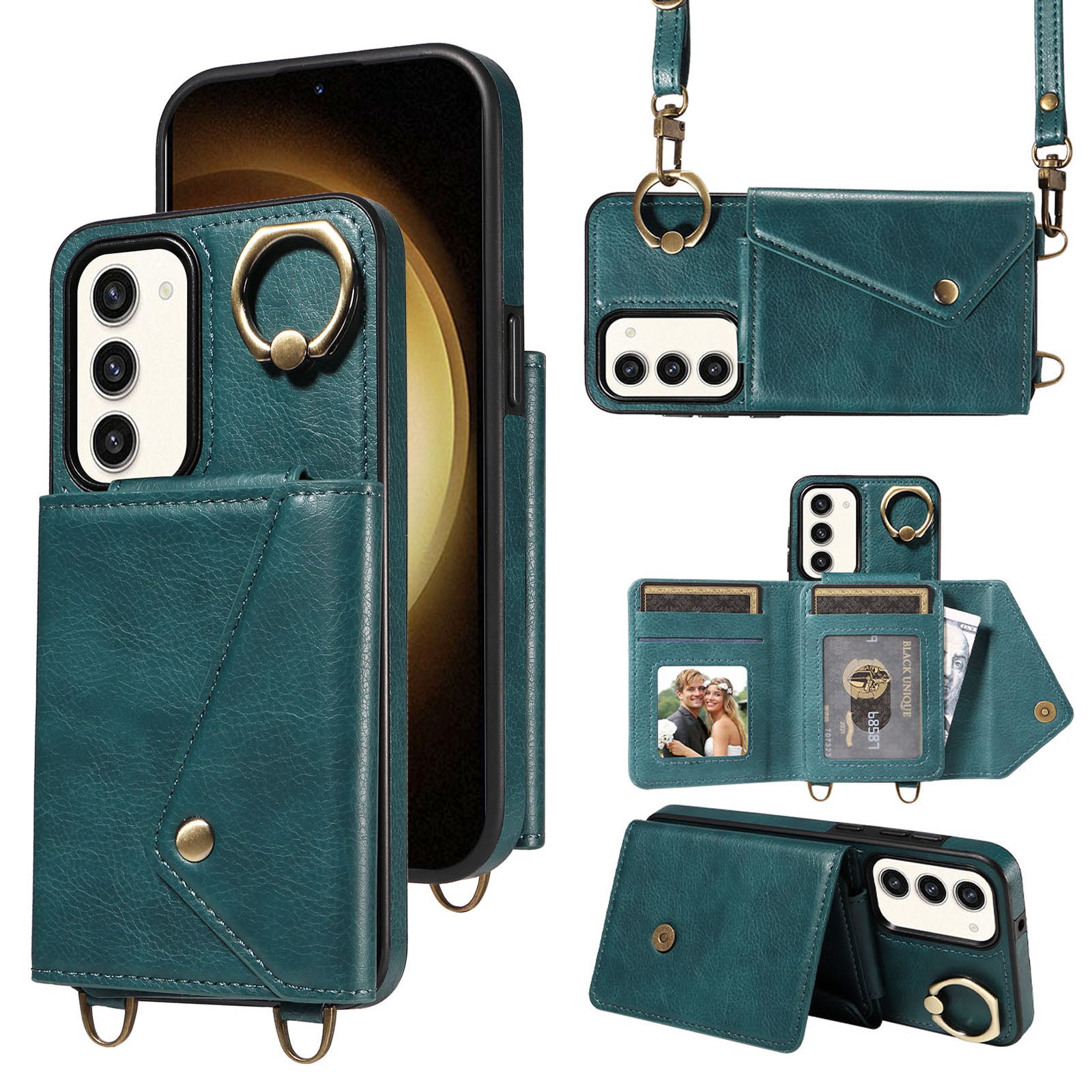 - 002 For Samsung Galaxy S23 Card Bag Design Ring Kickstand Cellphone Cover Litchi Texture Leather TPU Phone Case with Shoulder Strap 002 For Samsung Galaxy S23 Card Bag Design Ring Kickstand Cellphone Cover Litchi Texture Leather TPU Phone Case with Shoulder Strap