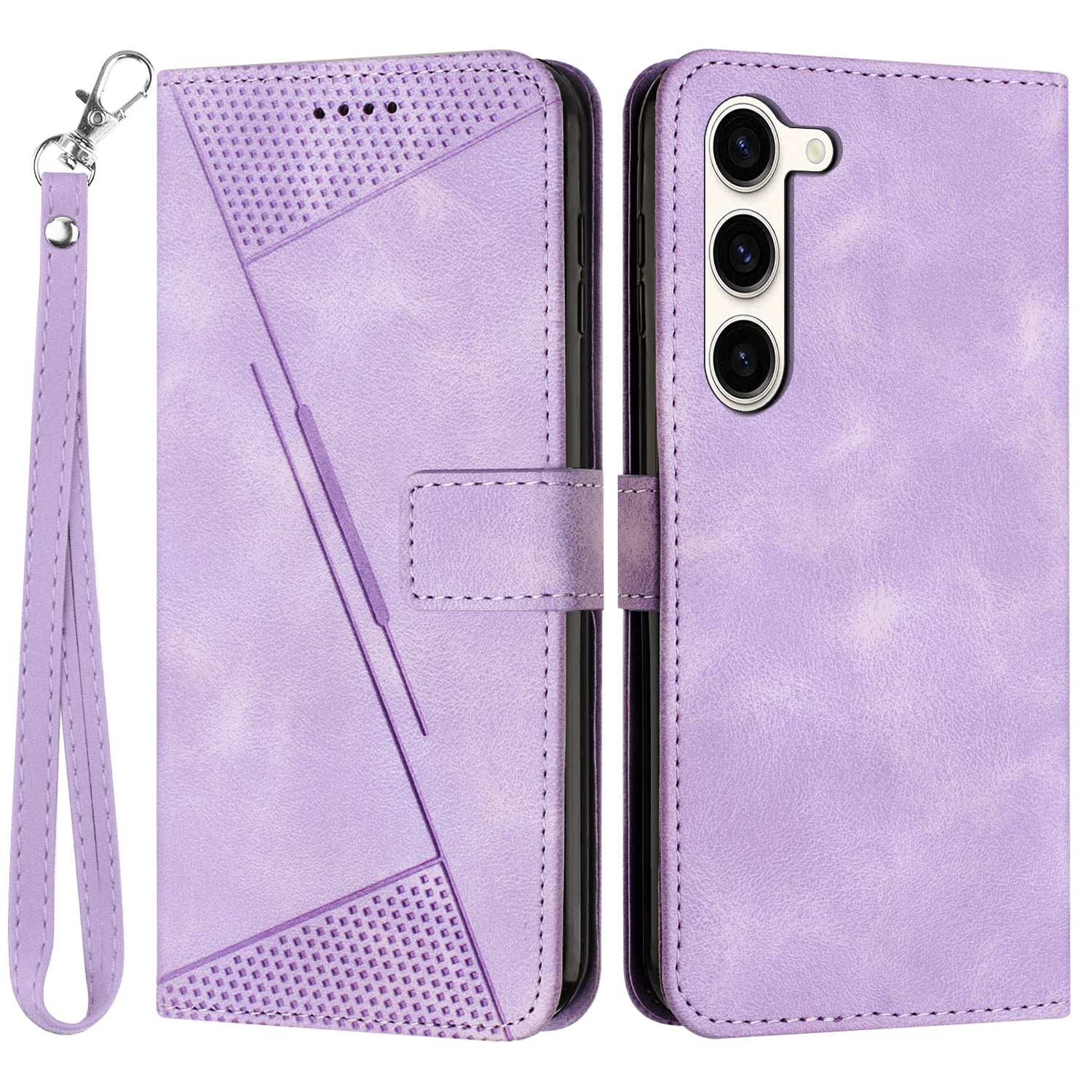 - For Samsung Galaxy S23 Triangle Imprint Protective Phone Case Leather Wallet Stand Cover with Strap For Samsung Galaxy S23 Triangle Imprint Protective Phone Case Leather Wallet Stand Cover with Strap