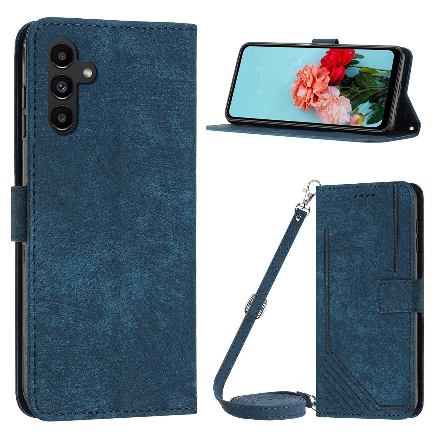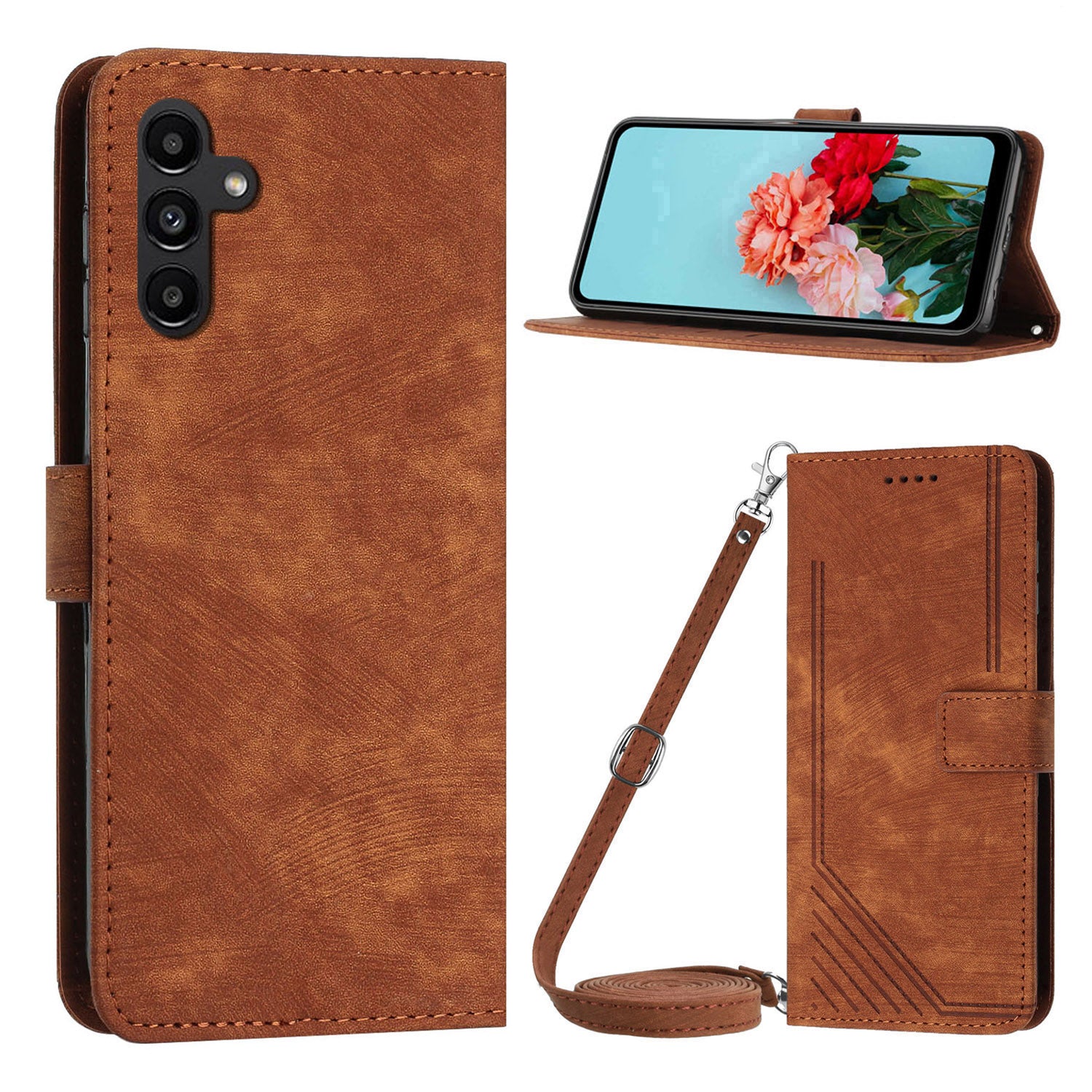 - Leather Case for Samsung Galaxy S23 FE Lines Imprinted Stand Wallet Phone Cover with Shoulder Strap Leather Case for Samsung Galaxy S23 FE Lines Imprinted Stand Wallet Phone Cover with Shoulder Strap