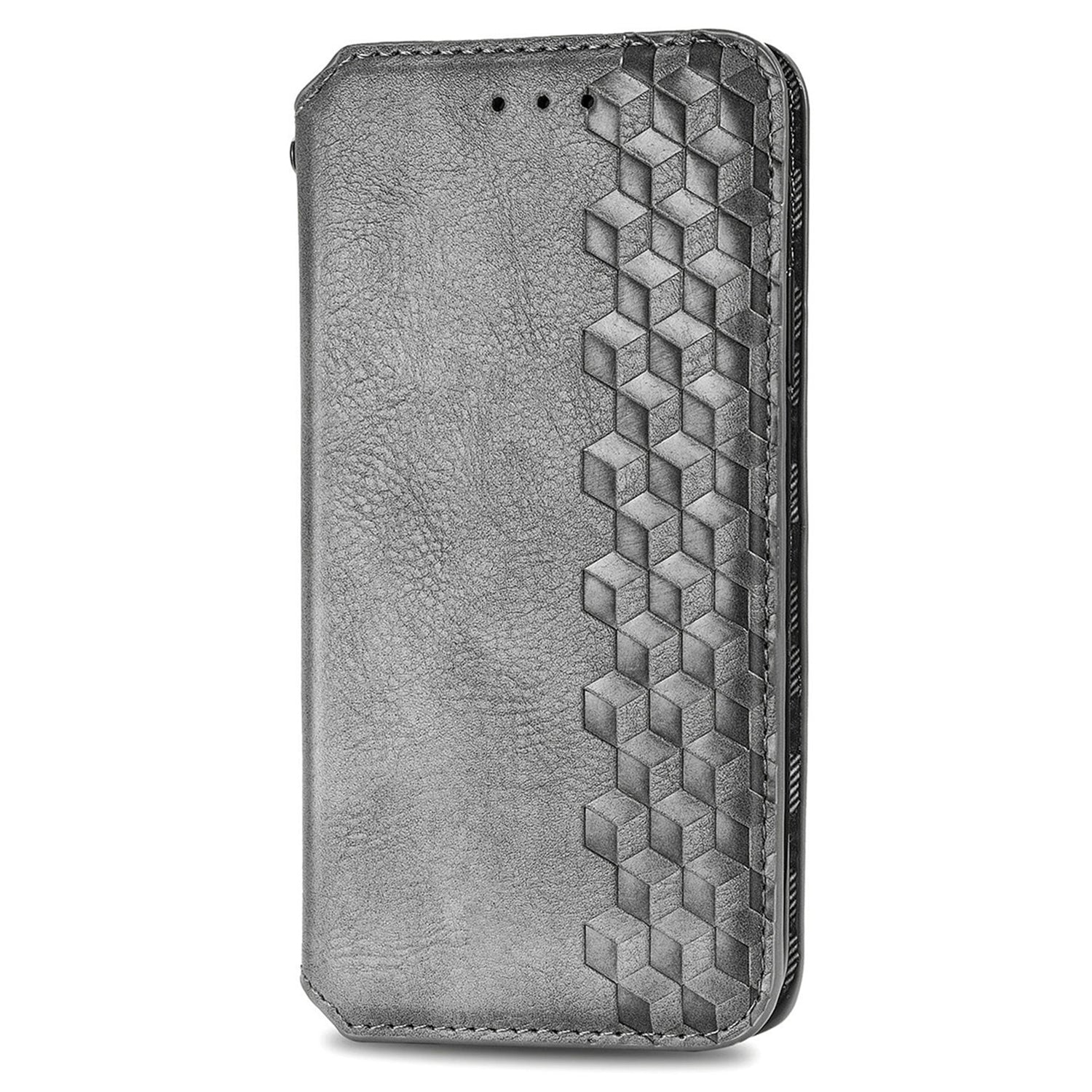 For Blackview A100 4G Magnetic Auto-Absorbed Flip Leather Phone Protective Case Imprinting Rhombus Foldable Stand Wallet Cover