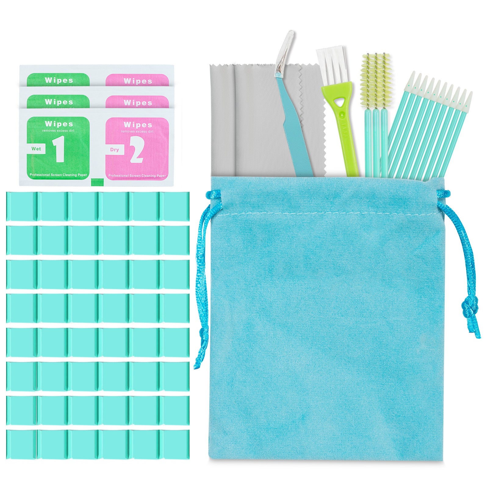 - Complete Set: Including a big brush, 3 small brushes, 10 anti-static swabs, 2 dust-free cloths, 3 alcohol packs, 48 cleaning clay, a tweezer, and a storage bag