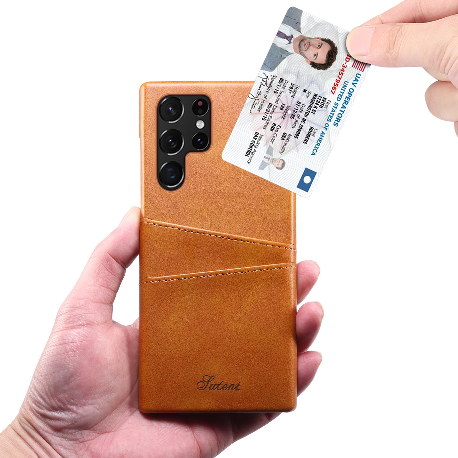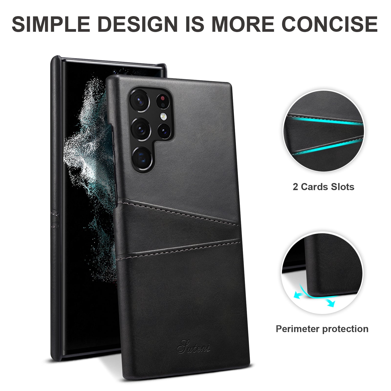 - SUTENI For Samsung Galaxy S23 Ultra PU Leather Coated PC Phone Case Shockproof Calf Texture Back Cover with Card Slots SUTENI For Samsung Galaxy S23 Ultra PU Leather Coated PC Phone Case Shockproof Calf Texture Back Cover with Card Slots