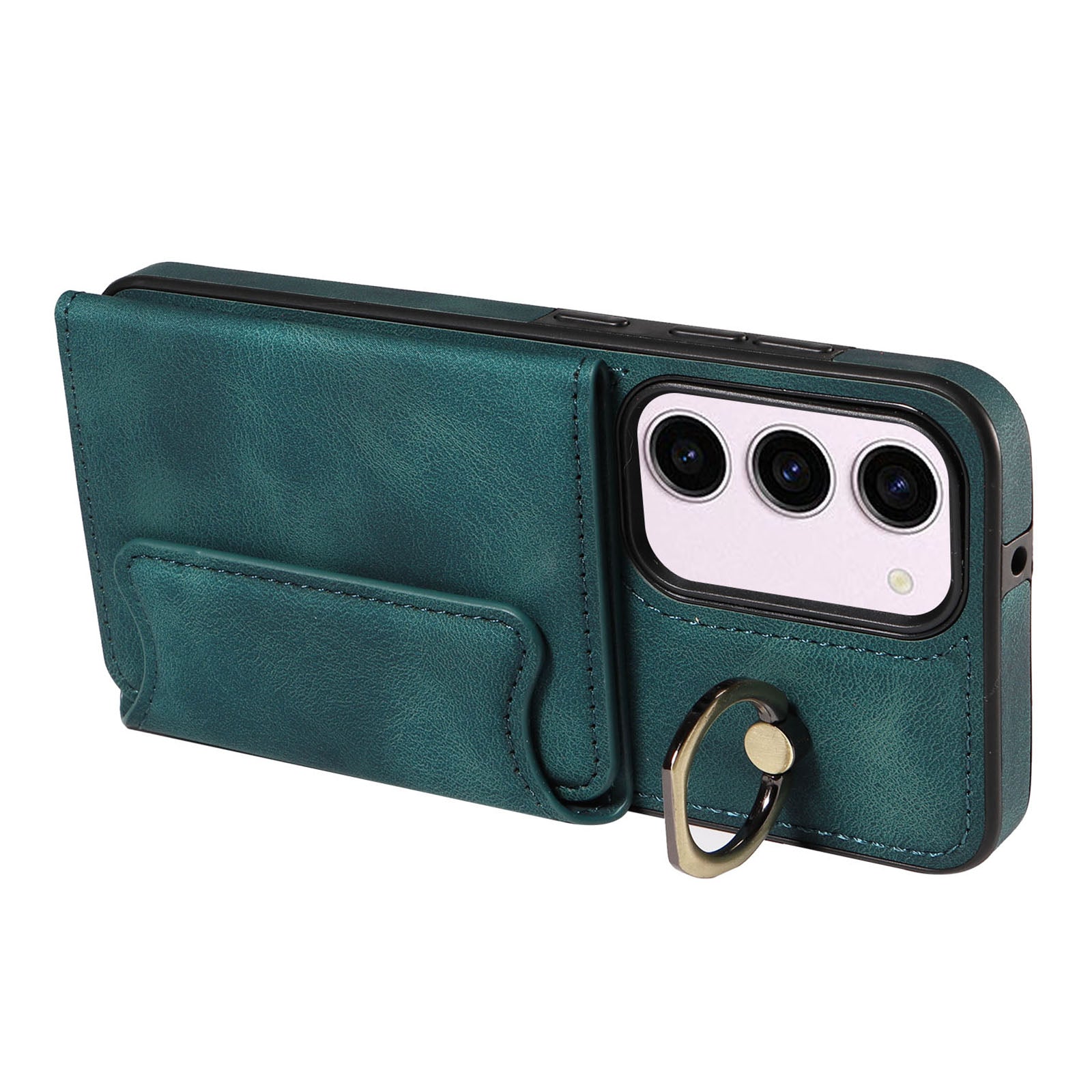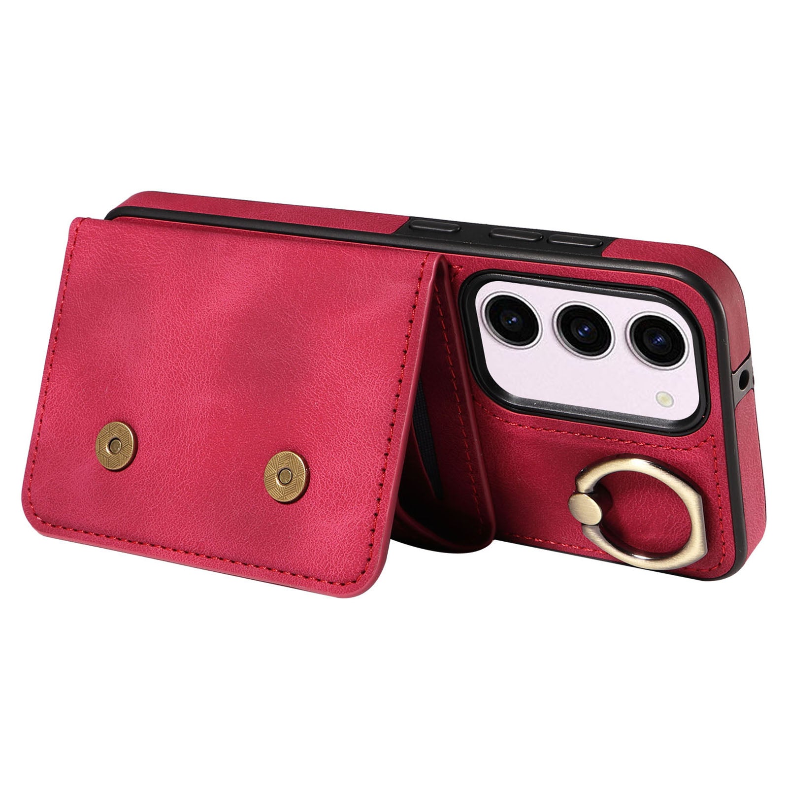 001 PU Leather TPU Back Cover for Samsung Galaxy S23 Ring Kickstand Phone Case with Card Holder
