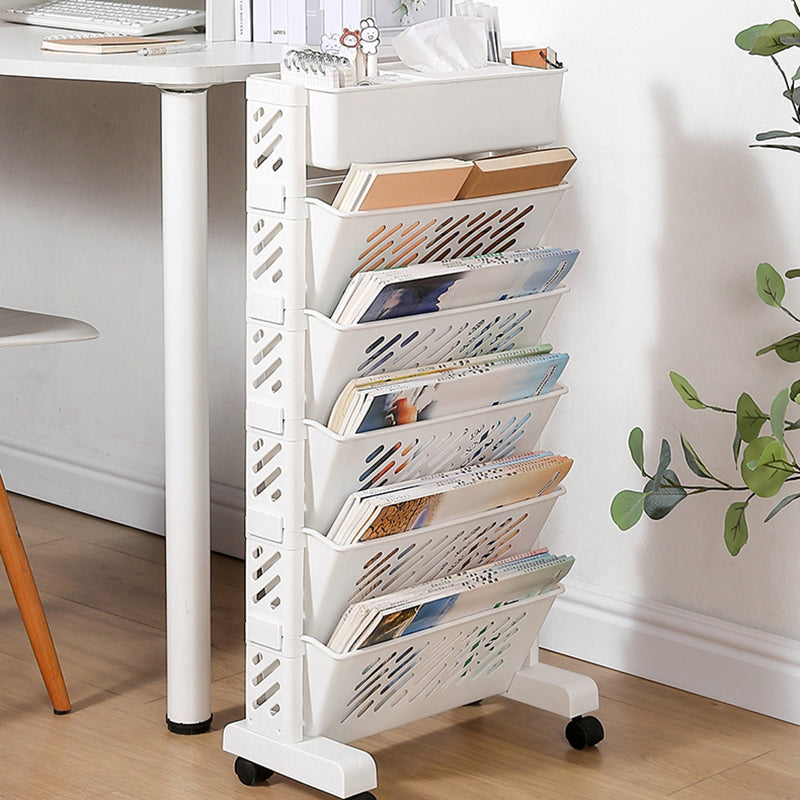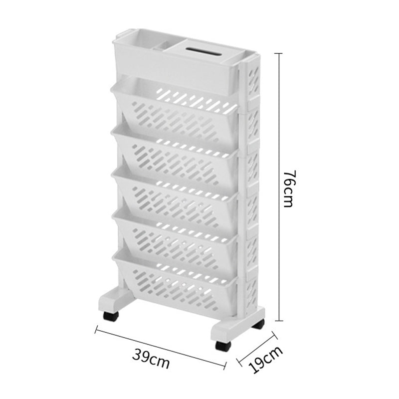 6-Tier Hollow Storage Trolley Tissue Box Design Plastic Book Shelf with Wheels