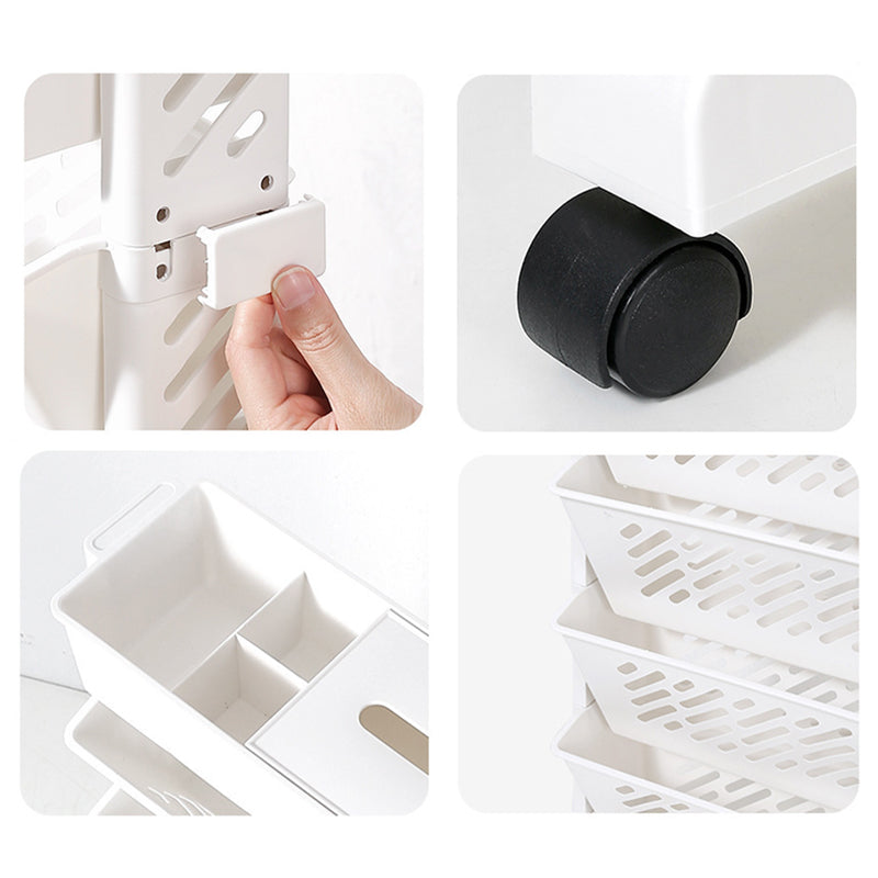 - 6-Tier Hollow Storage Trolley Tissue Box Design Plastic Book Shelf with Wheels 6-Tier Hollow Storage Trolley Tissue Box Design Plastic Book Shelf with Wheels