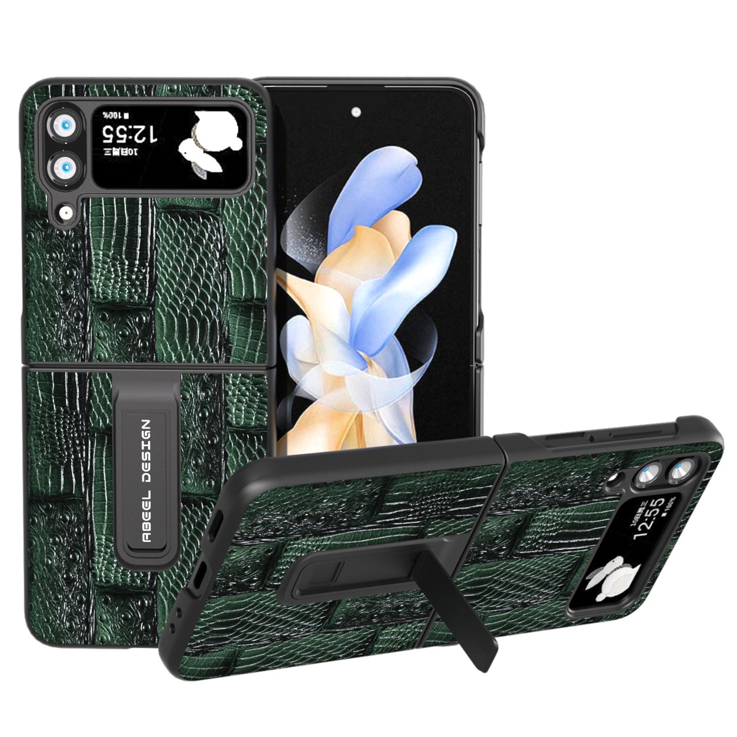 - ABEEL For Samsung Galaxy Z Flip4 5G Mahjong Texture Anti-slip Case Genuine Cow Leather PC Kickstand Phone Cover ABEEL For Samsung Galaxy Z Flip4 5G Mahjong Texture Anti-slip Case Genuine Cow Leather PC Kickstand Phone Cover