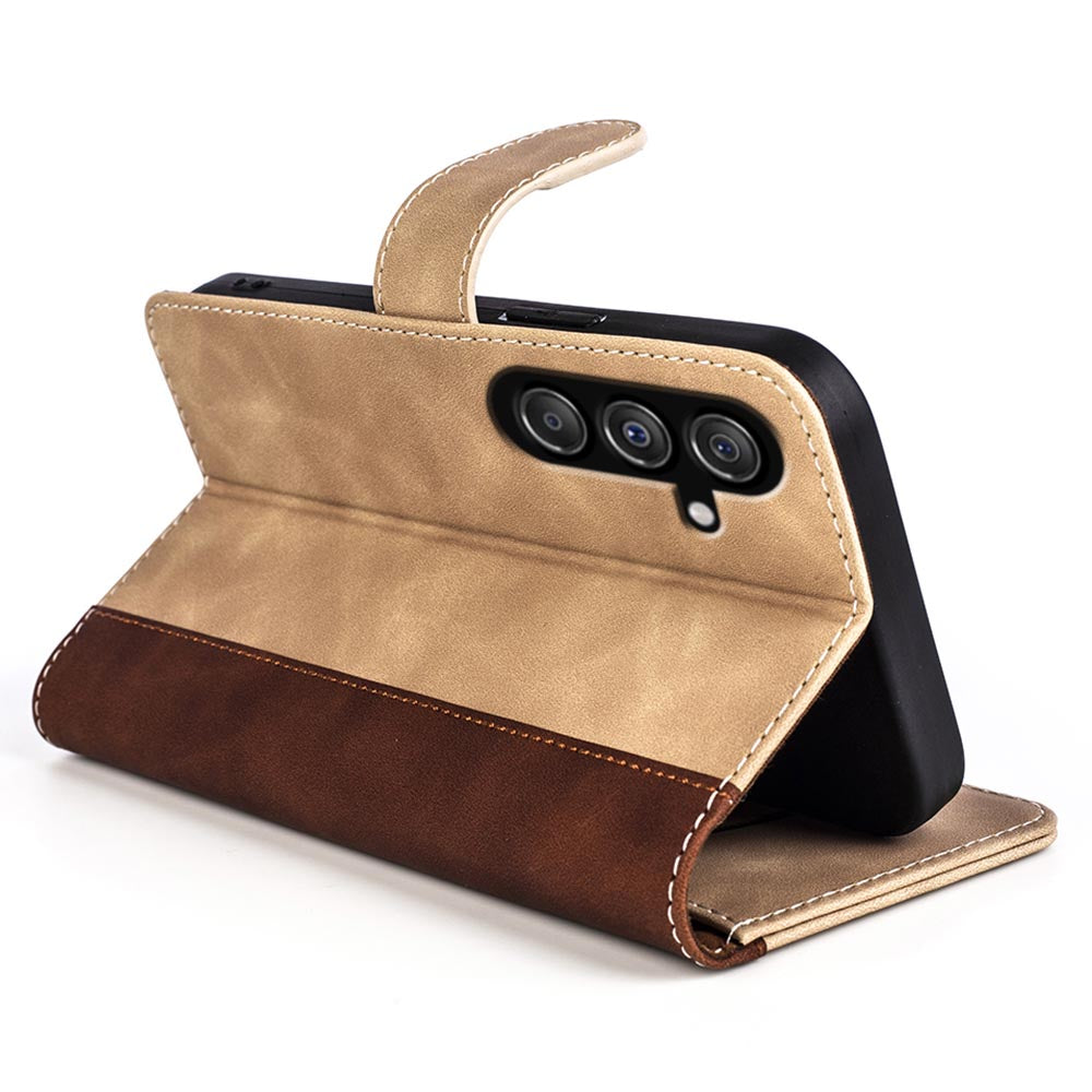 Dual-color Splicing Phone Case for Samsung Galaxy F34 5G M34 5G Leather Wallet Stand Anti-scratch Cover