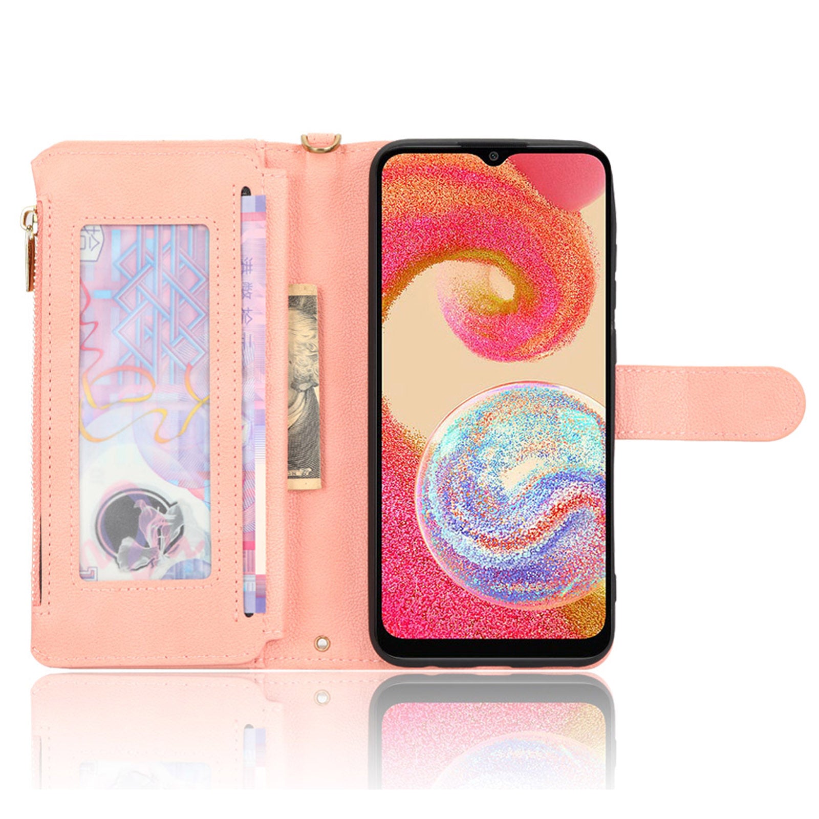 Flip Leather Case for Samsung Galaxy A04e 4G / F04 4G / M04 4G Wallet Zipper Pocket Drop Proof Phone Cover with 2 Straps