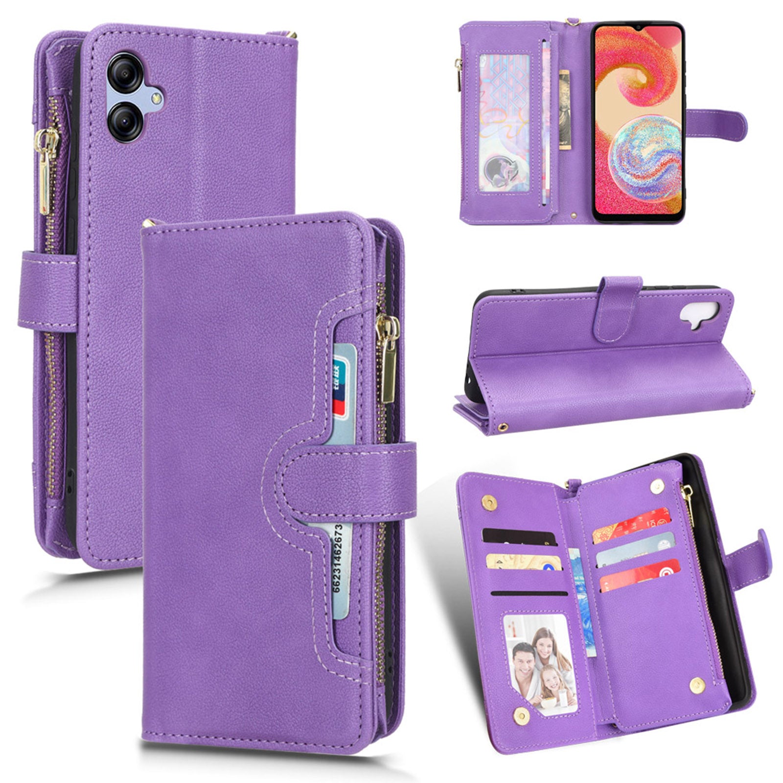 - Flip Leather Case for Samsung Galaxy A04e 4G / F04 4G / M04 4G Wallet Zipper Pocket Drop Proof Phone Cover with 2 Straps Flip Leather Case for Samsung Galaxy A04e 4G / F04 4G / M04 4G Wallet Zipper Pocket Drop Proof Phone Cover with 2 Straps