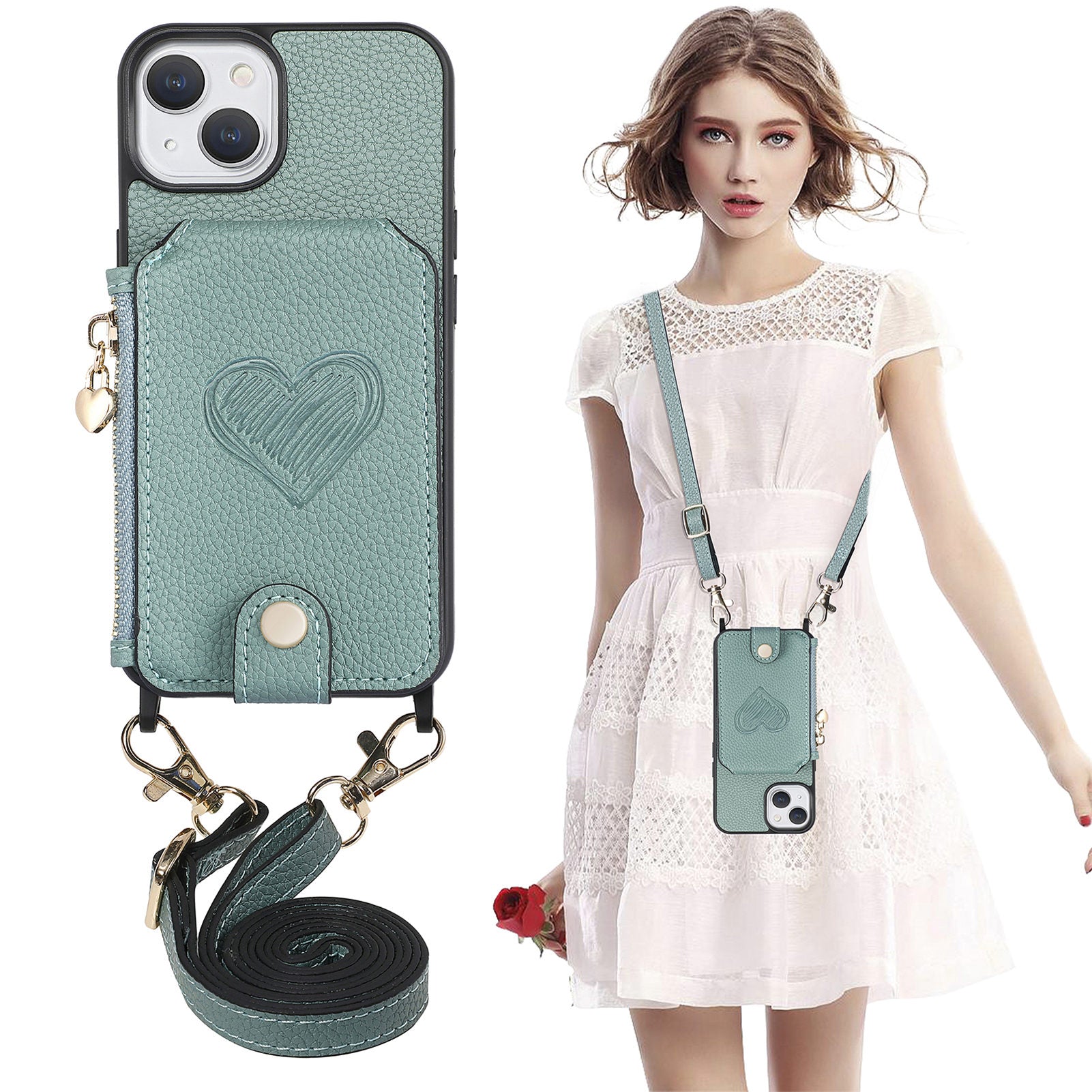 - Zipper wallet featuring heart imprinted on the back, can hold your essential cards and cash