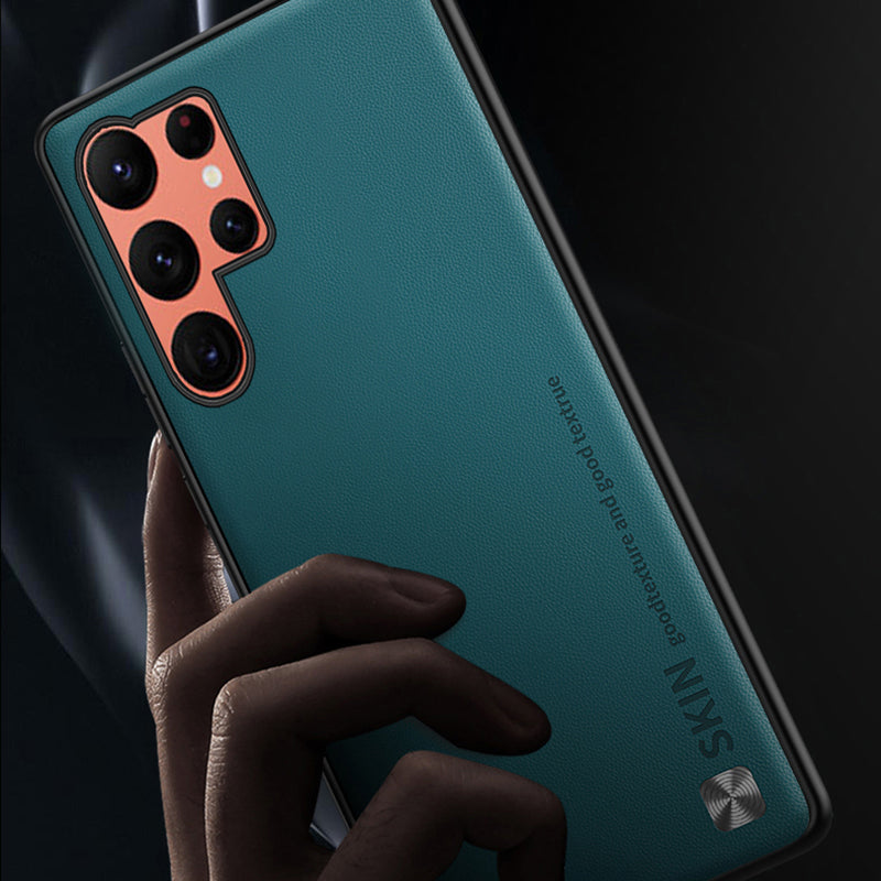 - For Samsung Galaxy S23 Ultra Metal Decor Protective Shell PU Leather Coated PC TPU Phone Case For Samsung Galaxy S23 Ultra Metal Decor Protective Shell PU Leather Coated PC TPU Phone Case