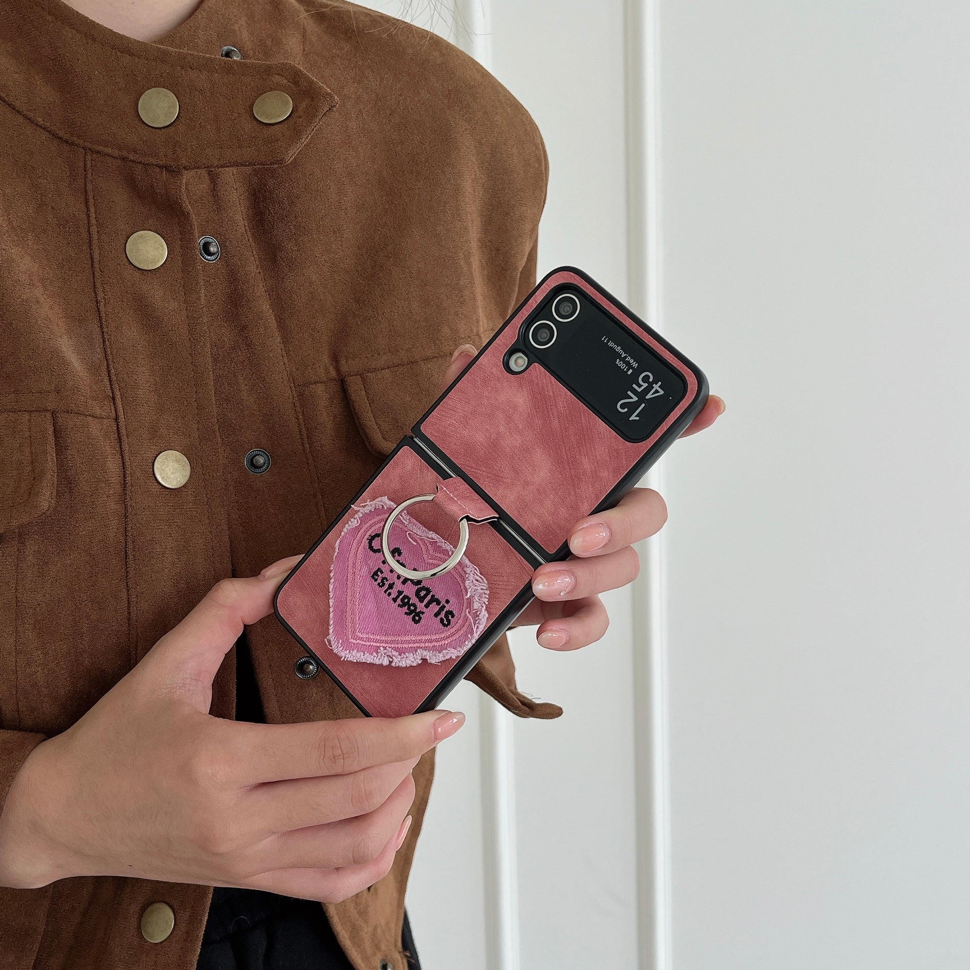 - For Samsung Galaxy Z Flip4 5G Case Heart Embroidery Leather Coated PC Cover with Ring Kickstand For Samsung Galaxy Z Flip4 5G Case Heart Embroidery Leather Coated PC Cover with Ring Kickstand