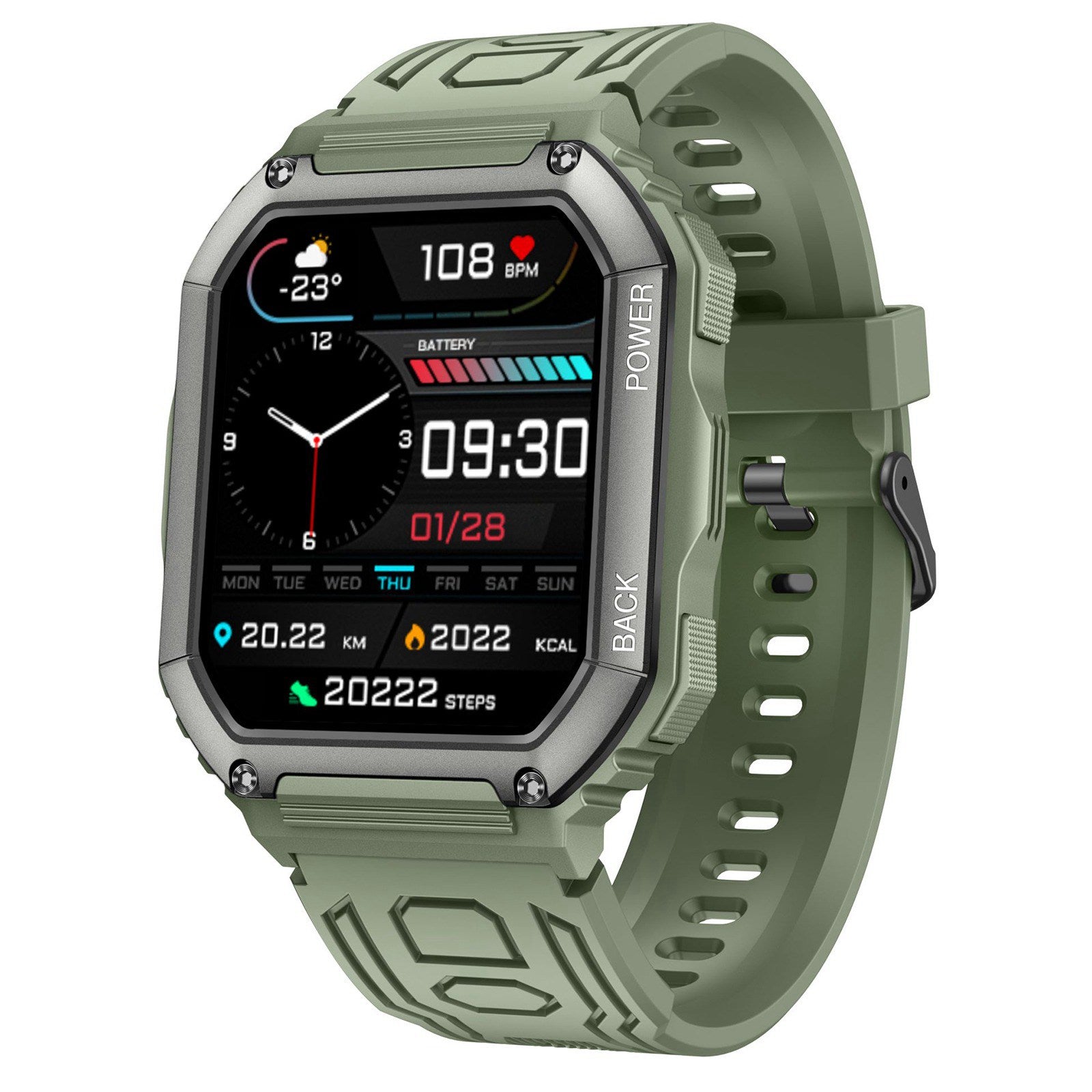KR06 1.8 inch Smart Watch Bluetooth Call Music Playback IP67 Waterproof Sports Bracelet with Heart Rate and Blood Pressure Monitoring - Green