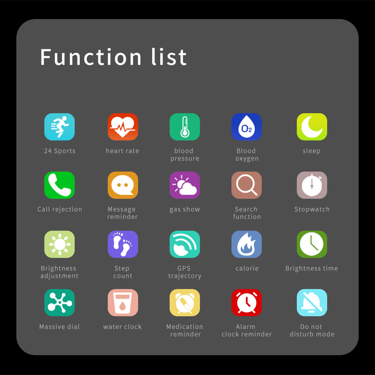 - The basic function: 24 modes of exercise, heart-rate/blood pressure/blood oxygen monitoring, pedometer, Time and date display, step counting, calorie, distance display with a screen, Sleep monitoring (sleep time, sleep quality), Standard motor function (step counting, distance, calories), GPS track movement, Time interface 6 kinds of UI dial display + massive dial + self-defined disc, mechanical movement style theme UI, 7 messages storage view