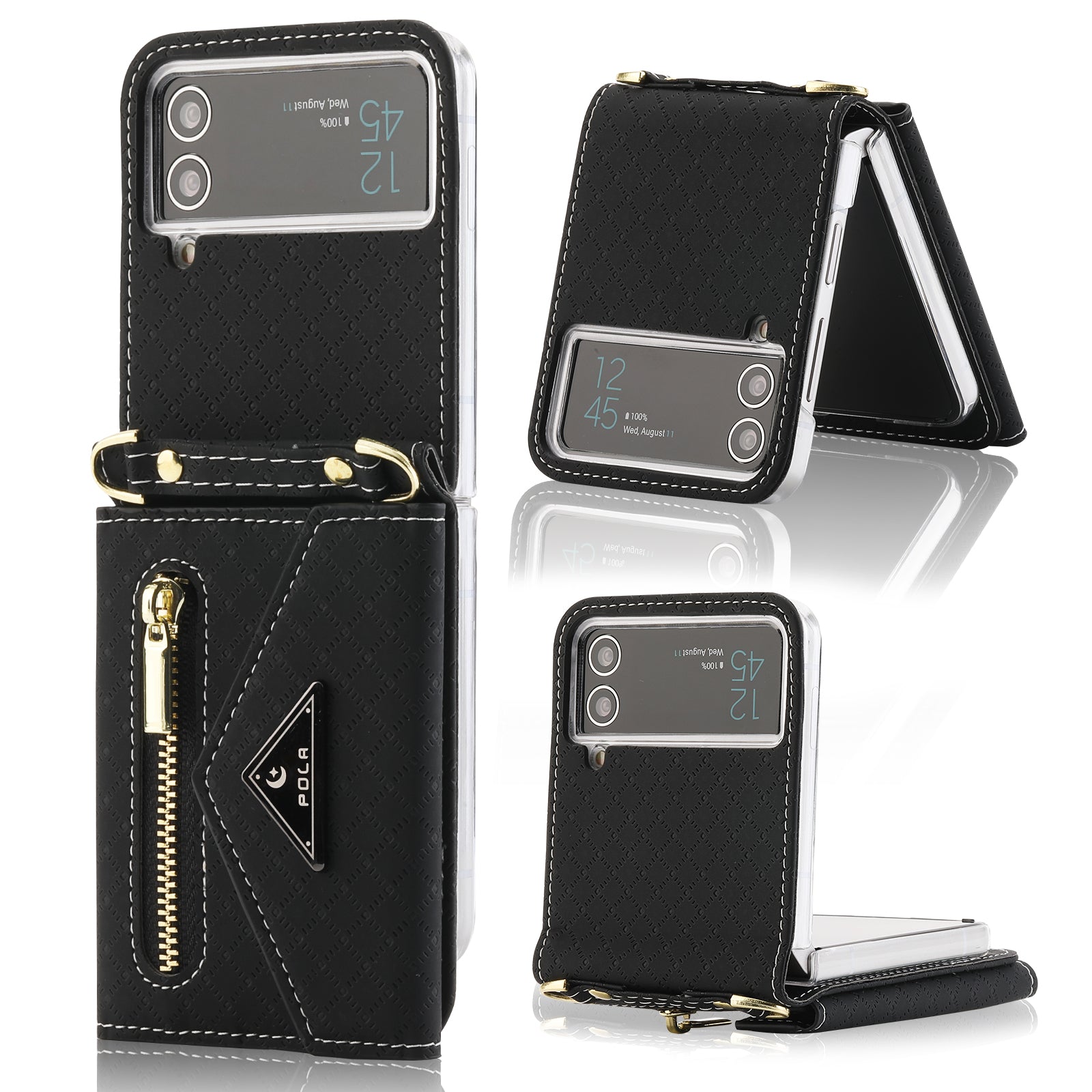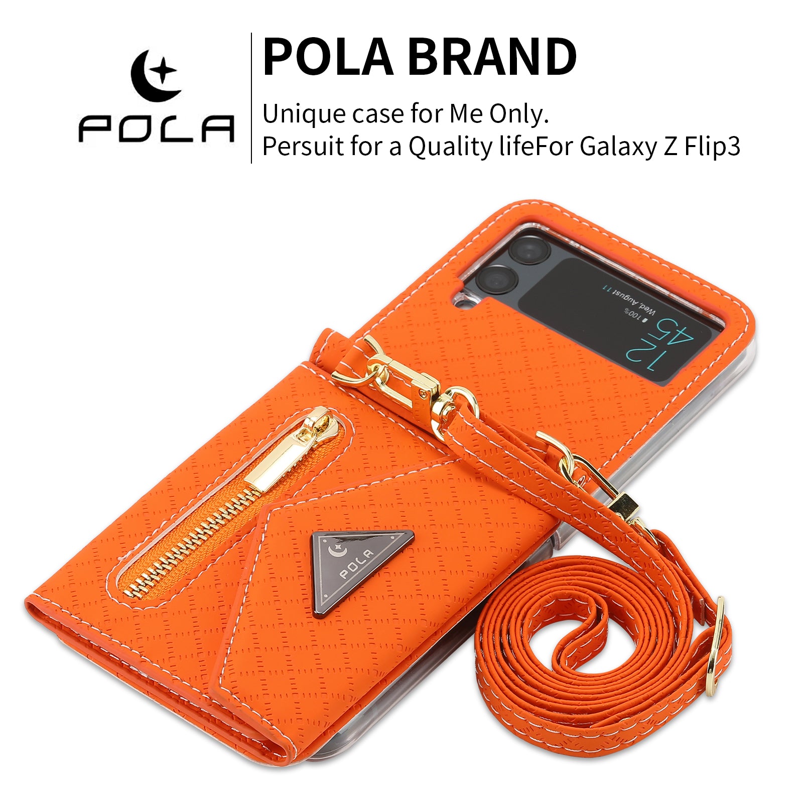 - POLA 0819 Anti-fall Phone Case for Samsung Galaxy Z Flip3 5G Zipper Pocket PU Leather Kickstand Multiple Card Slots Wallet Cover with Shoulder Strap POLA 0819 Anti-fall Phone Case for Samsung Galaxy Z Flip3 5G Zipper Pocket PU Leather Kickstand Multiple Card Slots Wallet Cover with Shoulder Strap