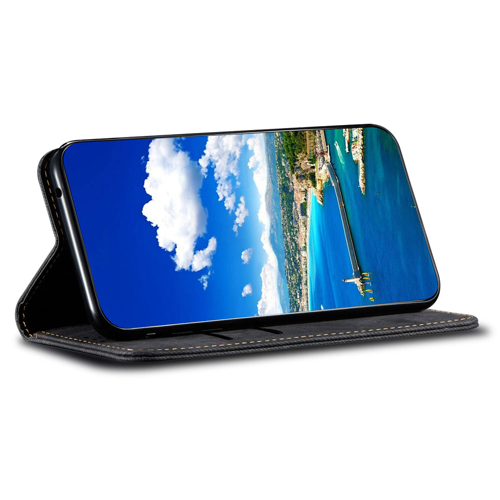 PU Leather Phone Stand Case for OnePlus 11 5G Jeans Cloth Texture Cell Phone Wallet Cover