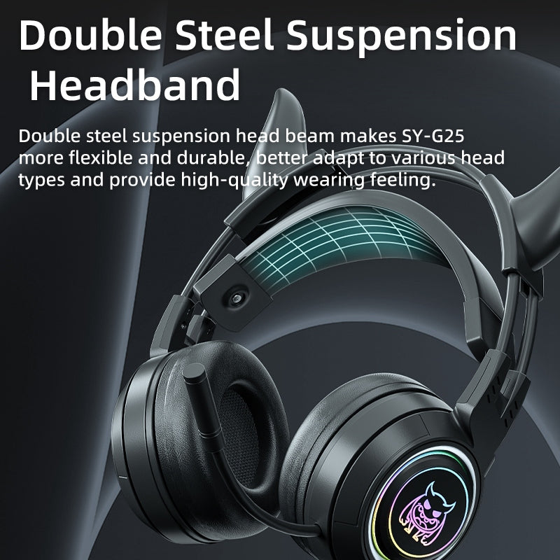 SY-G25 Devil Ears Design RGB Lighting Wired Control Gaming Earphone 3D Surround Sound Game Headset with HD Mic