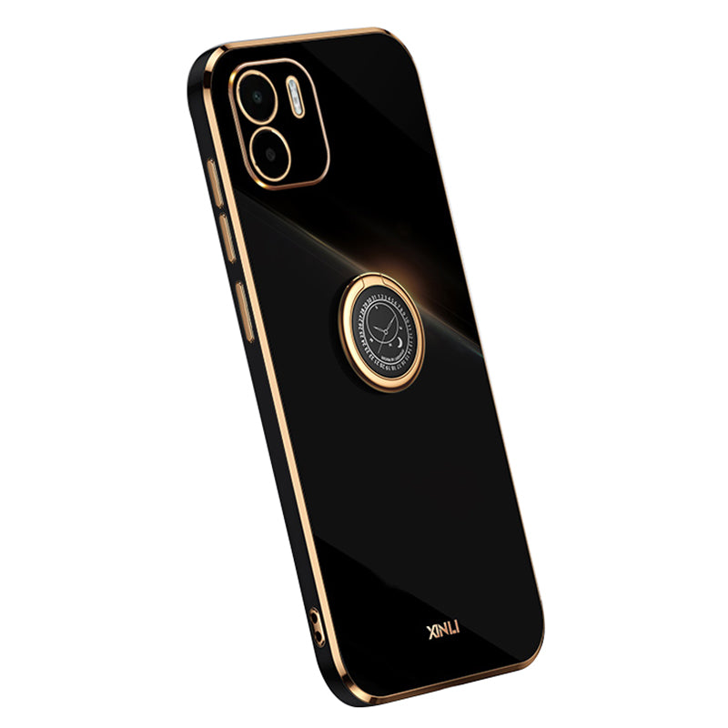 XINLI Kickstand Phone Case for Xiaomi Redmi A1 4G A2 4G Electroplating Golden Edge TPU Phone Cover with Ring Holder
