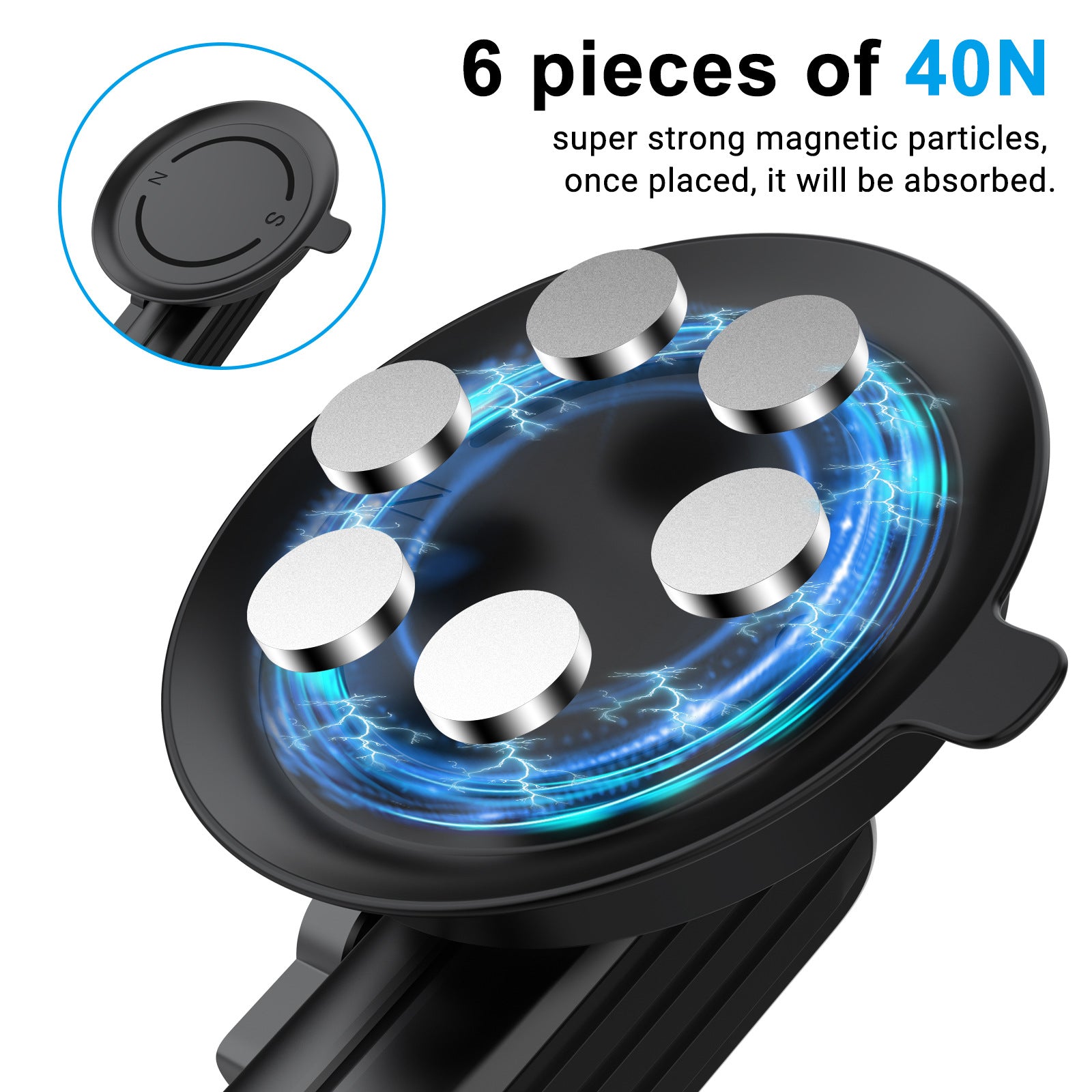 - The bottom silicone suction cup built-in 6 N40 strong magnets, which has strong adsorption capacity, safe and stable for high-speed driving and shooting. It can be sucked as soon as it is placed. The pure iron surface adsorption can withstand 90 pounds of pulling force