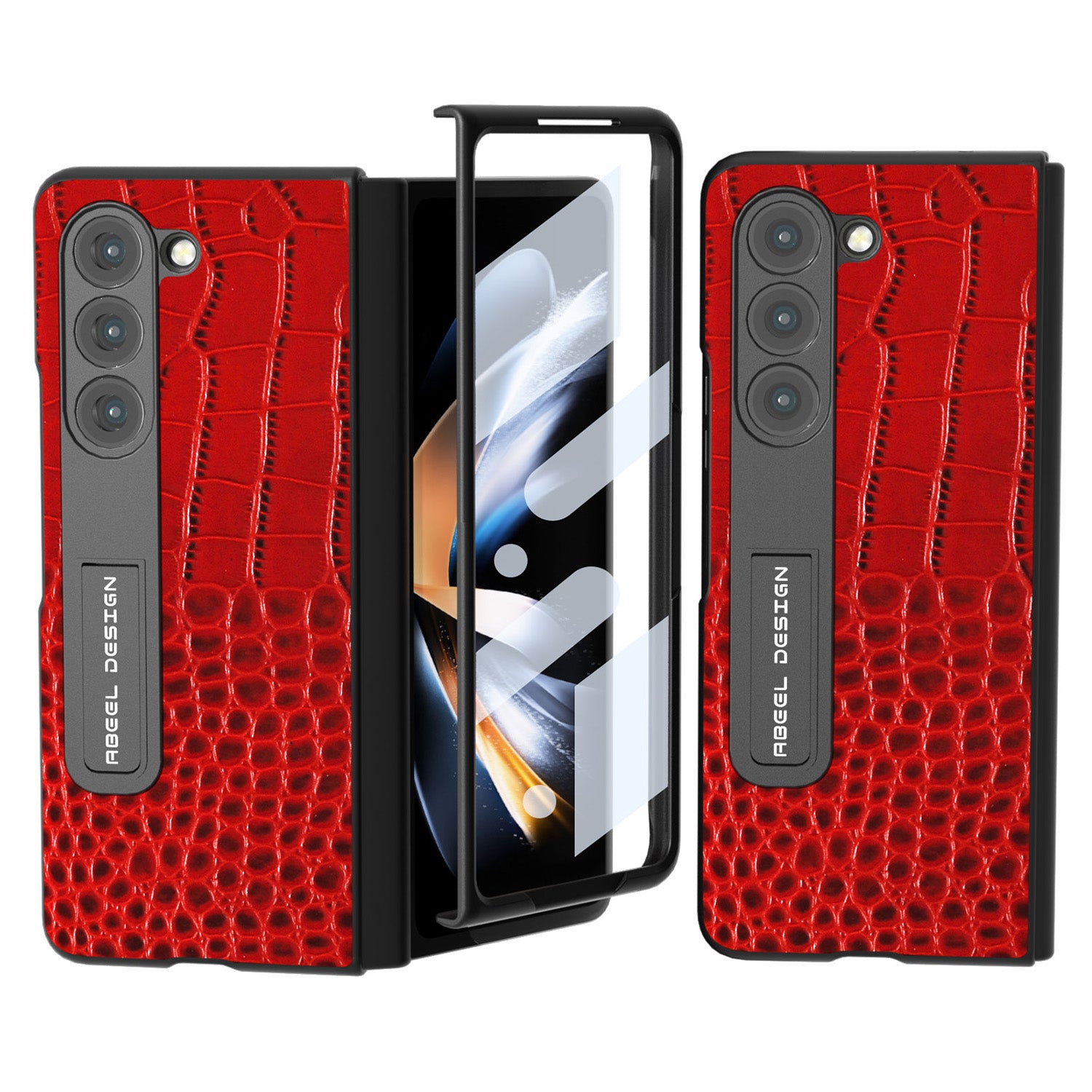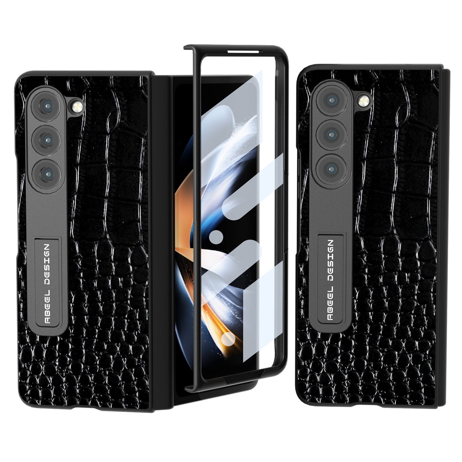 - ABEEL For Samsung Galaxy Z Fold5 5G Crocodile Texture Kickstand Cover Genuine Cow Leather PC Phone Case with Tempered Glass Screen Film ABEEL For Samsung Galaxy Z Fold5 5G Crocodile Texture Kickstand Cover Genuine Cow Leather PC Phone Case with Tempered Glass Screen Film