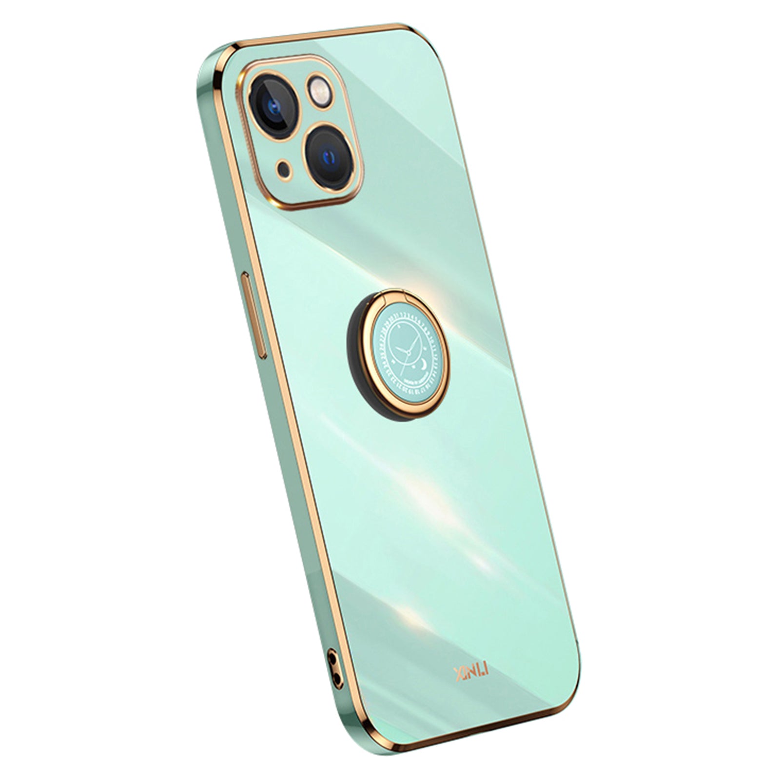- XINLI For iPhone 14 Cell Phone Cover Electroplating Golden Edge Shockproof Smartphone Case with Ring Kickstand - Purple XINLI For iPhone 14 Cell Phone Cover Electroplating Golden Edge Shockproof Smartphone Case with Ring Kickstand - Purple