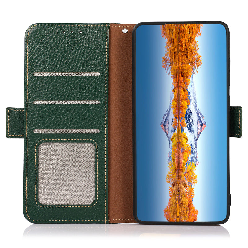 KHAZNEH For Samsung Galaxy S23 FE Genuine Cow Leather Phone Case Wallet RFID Blocking Stand Cover