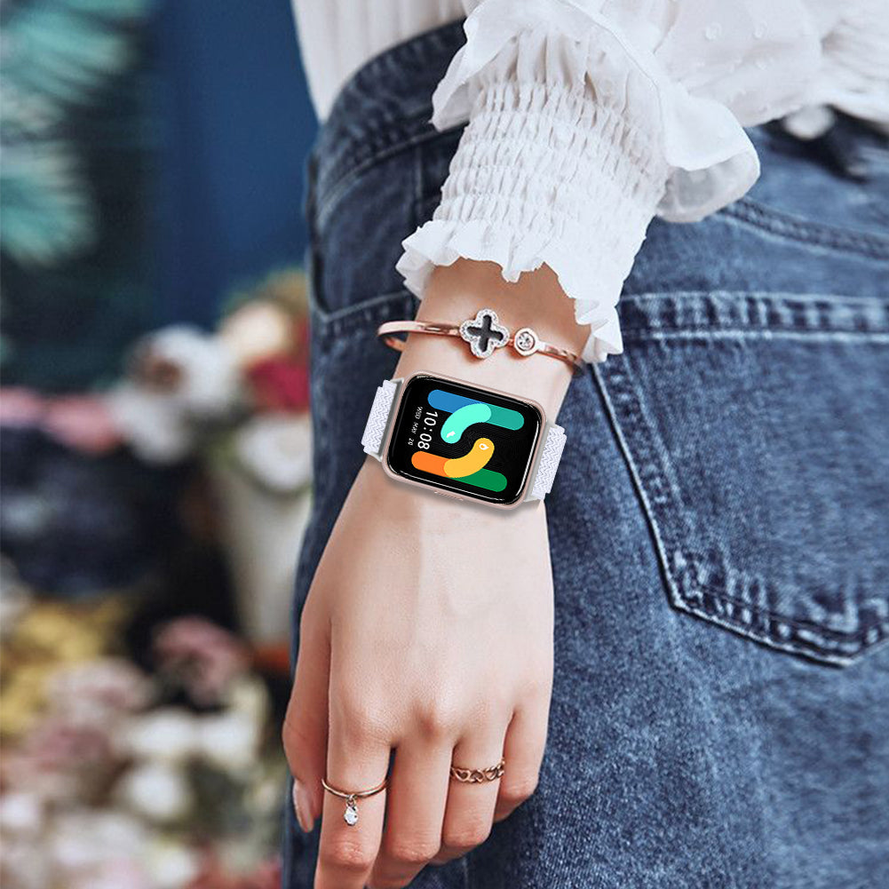 - For Samsung Galaxy Fit3 SM-R390 Woven Watch Strap Adjustable Wrist Band with Silver Connector - White For Samsung Galaxy Fit3 SM-R390 Woven Watch Strap Adjustable Wrist Band with Silver Connector - White