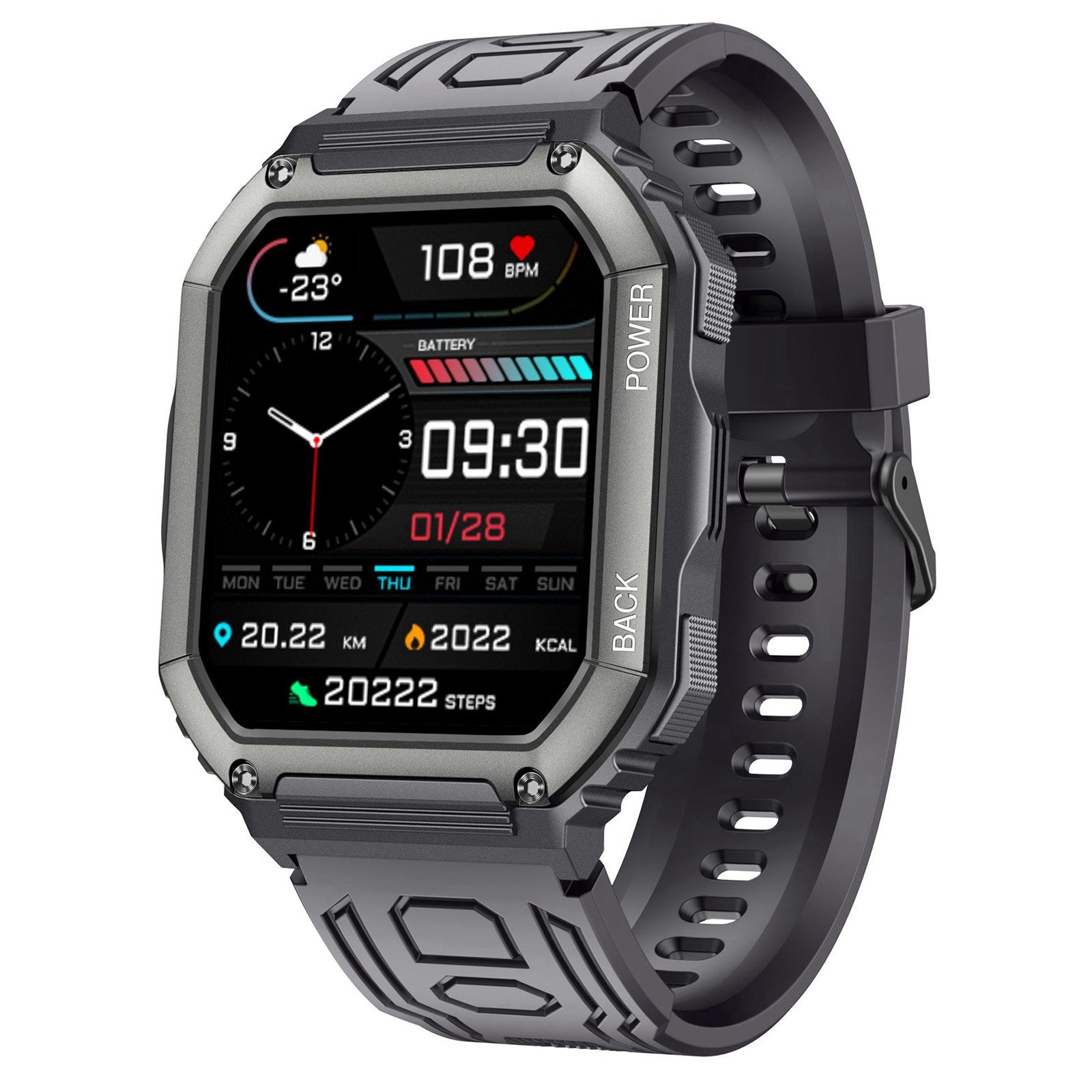KR06 1.8 inch Smart Watch Bluetooth Call Music Playback IP67 Waterproof Sports Bracelet with Heart Rate and Blood Pressure Monitoring - Black