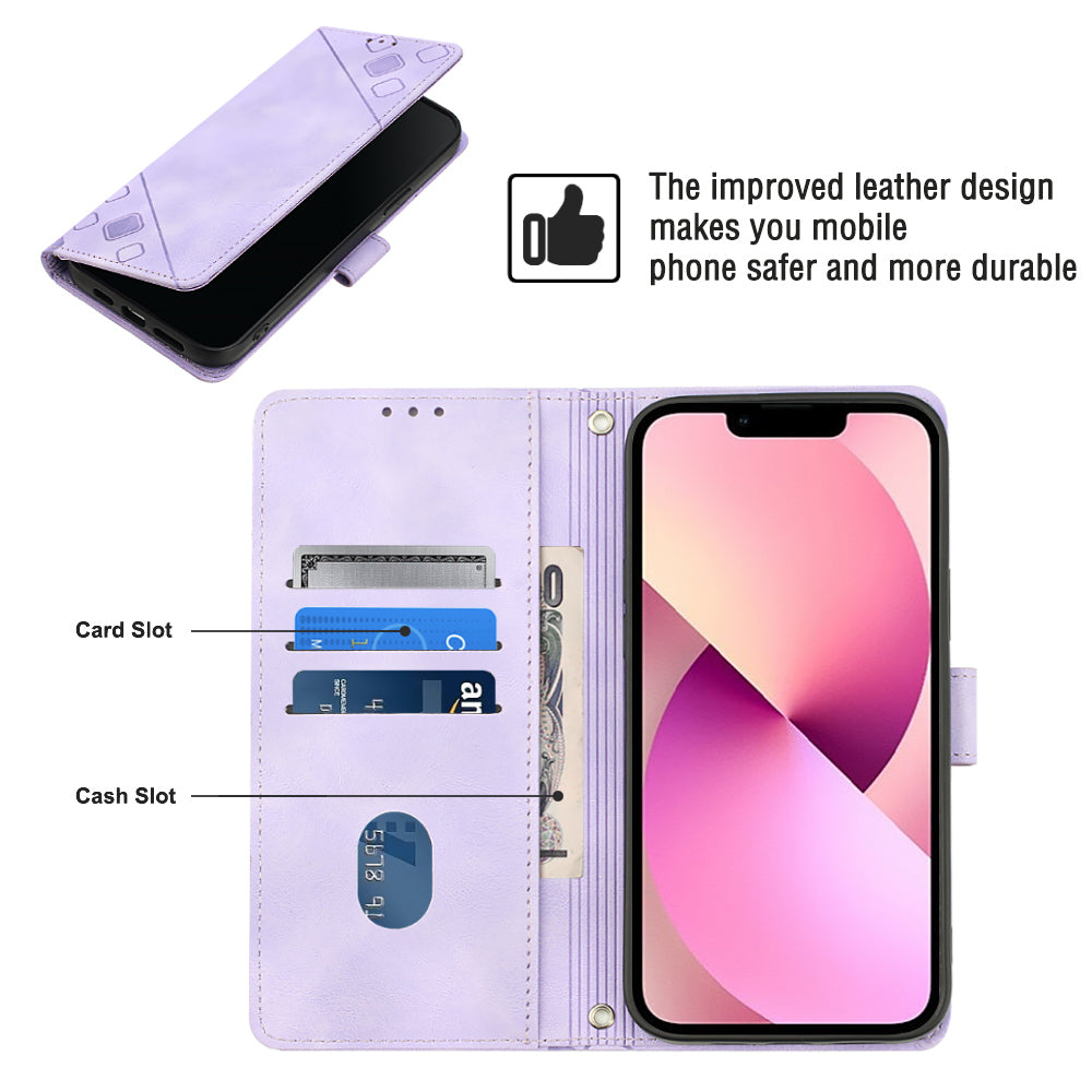PT005 YB Imprinting Series-6 Protective Shell for iPhone 13 mini 5.4 inch Skin Touch Leather Wallet Case with Stand