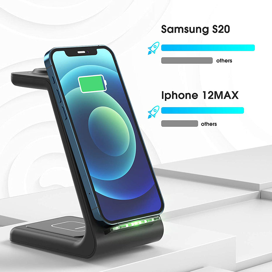 - T3 15W For Apple Watch AirPods iPhone Wireless Charger 15W 10W 7.5W 5W Charging Dock Station Phone Stand Holder for Samsung T3 15W For Apple Watch AirPods iPhone Wireless Charger 15W 10W 7.5W 5W Charging Dock Station Phone Stand Holder for Samsung